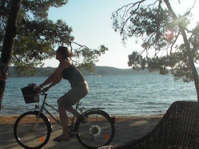 The apartments were actually mobile homes - with two separate bedrooms, each with their own very nice en-suite bathroom, and a little kitchen and living room in the middle. It was tempting, but it was also a lot more expensive than we had thought - €75 for the night, a little bit more than we were planning on spending - plus it was set back in the woods, great if you like shade, but not the waterside apartment that we had set our hearts on. When we told the lady that we liked it but were really looking for something either a bit cheaper or a bit closer to the sea, she was so helpful, she said that there were a lot of apartments, although most were closer to the centre, but if we liked we could go and have a look and the office was open to 9pm if we wanted to come back.