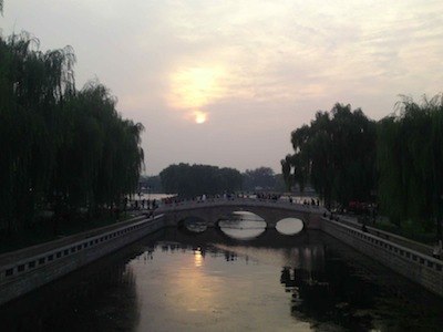 I think if I had come to Hou Hai first I would probably have thought it was a horrible tourist trap, with its Starbucks and hostesses in cheongsams; but after wandering through the Chinese-only outskirts of Beijing I was delighted to see signs and hear English again, and after visiting so many walled in parks it was lovely to see the locals taking their evening swim in the lake, or playing their music and singing along, or just passing by on their way home. I was hoping that if I waited long enough I’d see the lamps being floated out onto the lake at sunset, but finally, after circling the lake several times, with not enough cash for even a Starbucks coffee I headed back to the main road. Ironically enough it was then that I found the Tourist Information Centre - this time with leaflets in every language - even Spanish. (So perhaps this is the place to begin your Beijing adventure!)