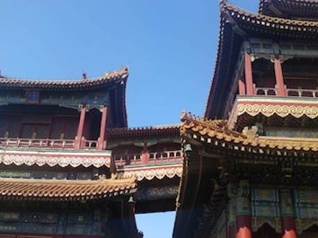 As I wandered further out, looking for a couple of recommended teahouses for lunch, I realised that I hadn’t a hope of finding them as all of the roads were marked in Chinese, as were the shops. It was all very well having a guidebook with the best silk shops listed, but there was no way in the world I could find them even if I was standing right in front of them! I managed to find lunch and coffee at a bakery with an empty coffee shop next door. After wandering into a tantalisingly signposted Tourist Information Office where all the guides were in Chinese I gave up and finally hailed a taxi to The Lama Temple.