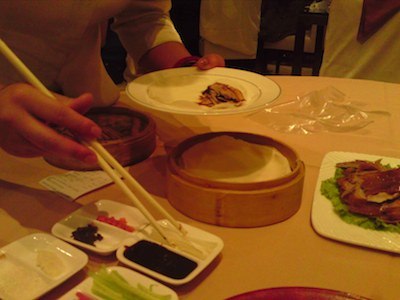 What was more impressive was that the waitress showed me how to make up my pancakes using just chopsticks. First you pick up a piece of duck and use it as a brush for the sauce and then delicately fold over the sides - very artistic. If you don’t want to eat the duck this way you can also just dip it in the pile of rough cut sugar that comes with the meal.