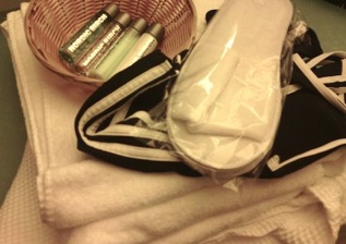 Via Spa goodies - towels, robe, slippers, smellies, and swimsuit