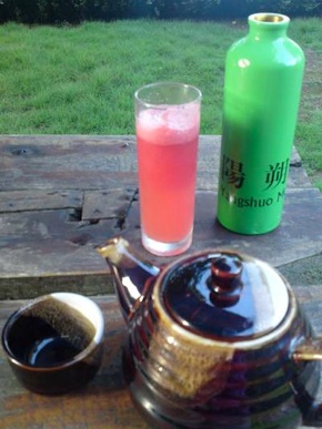 Tea, watermelon juice and my water bottle, Yangshuo Mountain Retreat