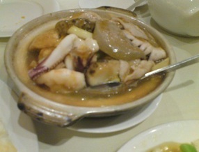 So Saturday, and our first stop was breakfast, in a shopping centre, and then on to the Chi Li Nunnery, which was a magical place to be. As I had booked the Dolphinwatch tour on Sunday morning, Saturday was our chance to visit all the recommended places in Kowloon. The day was racing by so our next stop was The Peninsular for afternoon tea, around 2pm but... the queue was so long that we gave up. We tried the Langham round the corner, but lunch was over, we tried another restaurant in a shopping centre - 45 minute wait - so we wandered up Jordan Road (I really couldn’t see what the big deal was), and, of course, did I mention that the whole time it was raining? Luckily umbrellas are for sale everywhere for about HK$20-40 (about £1.50-3.50) so we stocked up. Finally we managed to find somewhere to eat, Light Vegetarian as recommended by my DK Eyewitness guidebook. Normally we don’t bother too much with guide books for restaurants, but when every restaurant looked the same; busy, scary menu and big neon sign, it’s hard to recognise the good ones!