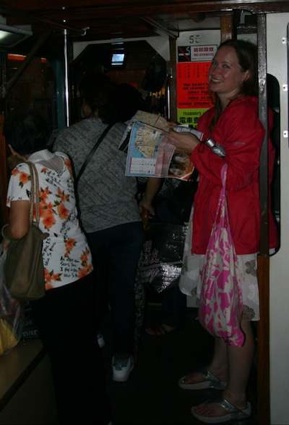 Pearl very wet on a tram, Hong Kong