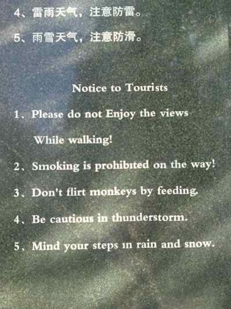 Shopping: Things you can buy on the mountain include Avatar T-shirts, walking sticks and lots and lots of pictures, videos and everything with the mountain on it. Similarly in Tunxi you can buy thousands of paintings of the mountain, videos, postcards, plus any painting supplies, including the biggest brushes you have ever seen (bigger than me!) There are also some insanely cheap shops where you can buy silk scarves, unfashionable underwear and lots of tat. There is also a good quality toy shop where you can buy Chinese puzzles. It’s also a good place to pick up anything you might need for the rest of your trips like umbrellas, baseball caps, etc. in the super cheap supermarket.