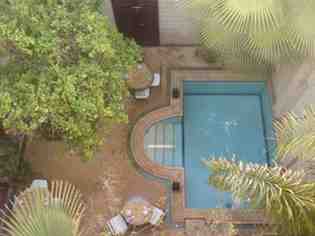 The pool in the courtyard of the Road Amira, Marrakech, Morocco, and my breakfast table