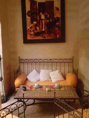 I think I stayed in the Jasmine room. The riad has lots of lovely little places to sit down and relax, or sunbathe on the roof - and they will bring you water or a tray of tea and pastries anytime you want - they really look after you - but if you want to eat dinner you normally have to book in advance - as they have to go to the market.