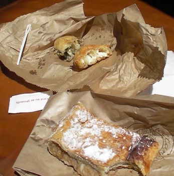 Burek and Apple Strudel from the local bakery, Elizabete Kotromanic, Zadar, Croatia